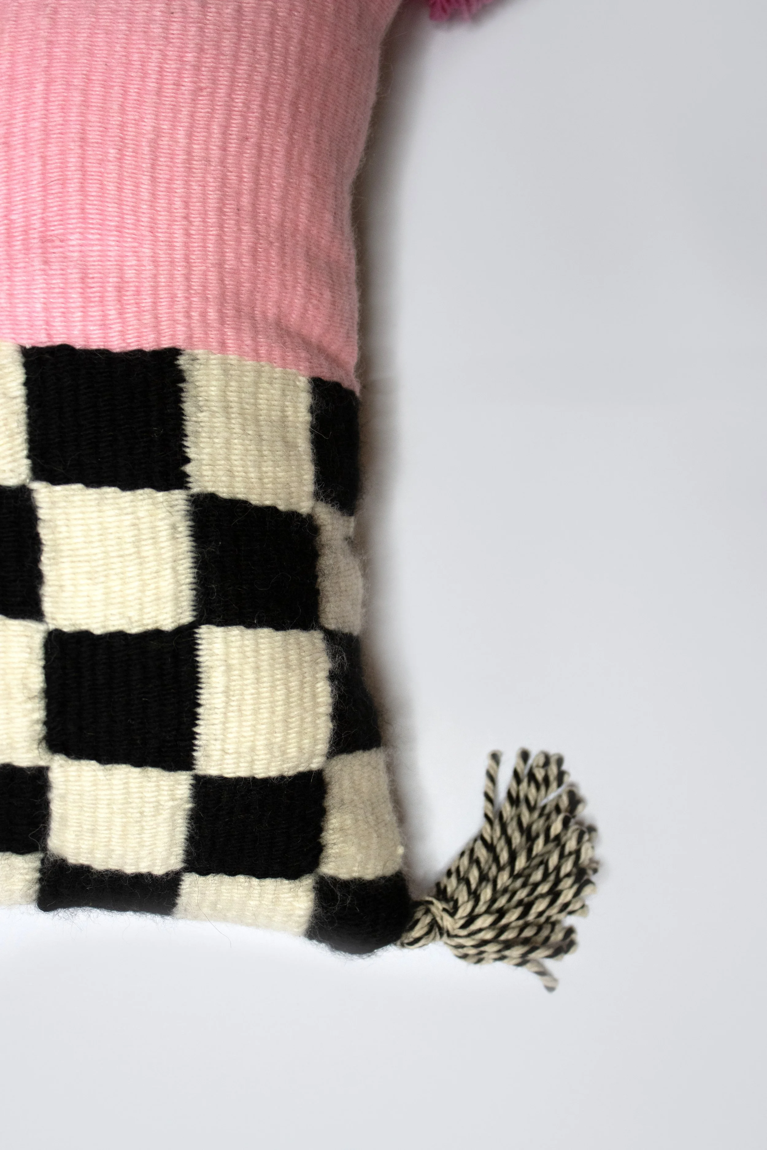 This pillow features a splash of classic checkered print with warm neons to give your living space an eclectic feel.